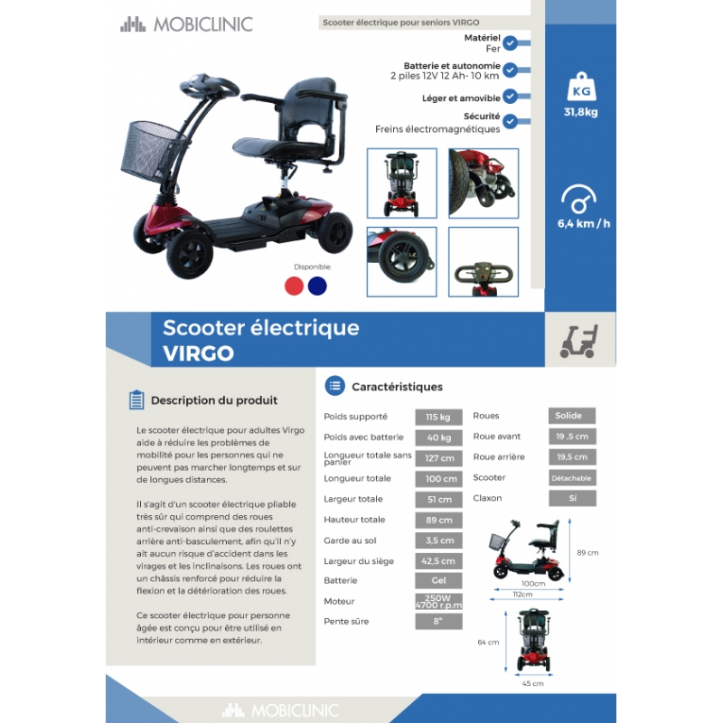 Le scooter électrique pour adultes Virgo aide à résoudre les problèmes de mobilité des personnes à mobilité réduite, qui ne peuvent pas marcher pendant de longues périodes et/ou sur de longues distances ou parce qu'elles se fatiguent facilement en raison de leur âge avancé.