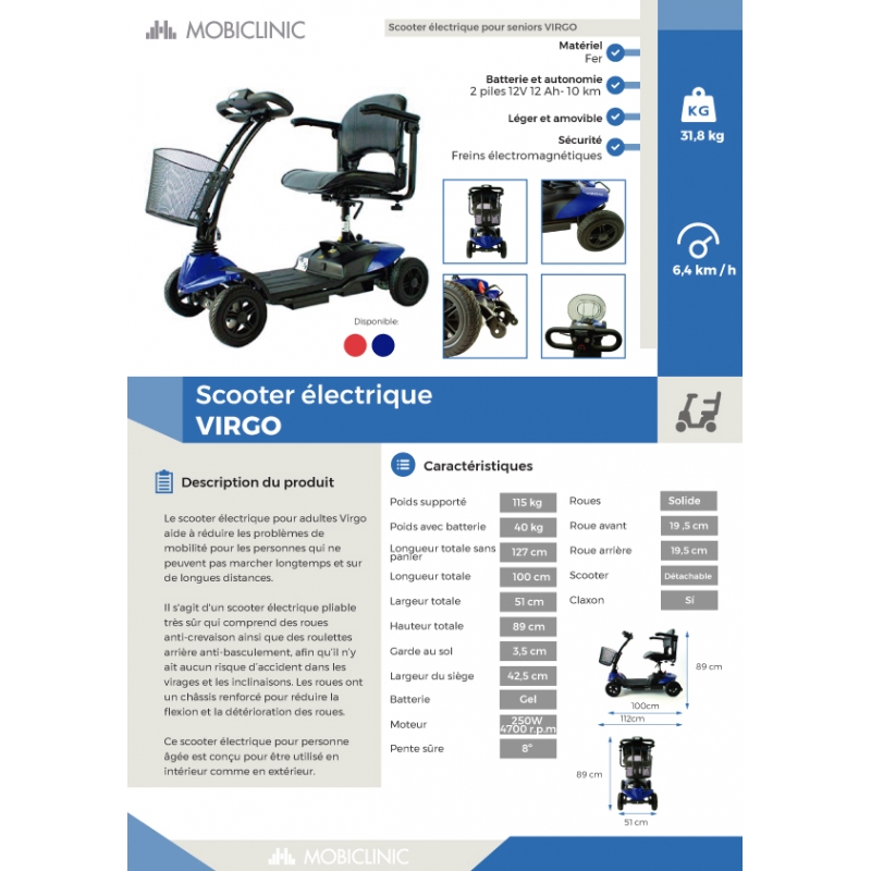 Le scooter électrique pour adultes Virgo aide à résoudre les problèmes de mobilité des personnes à mobilité réduite, qui ne peuvent pas marcher pendant de longues périodes et/ou sur de longues distances ou parce qu'elles se fatiguent facilement en raison de leur âge avancé.