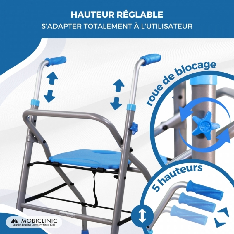 Déambulateur | Pliable | Aluminium et acier | Siège | 2 roues | Léger | Deluxe | Future | Mobiclinic