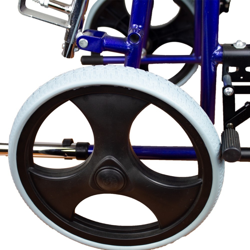 Ce produit a un ensemble de roues solides. Cette caractéristique élimine le risque de perforation intempestive et rend ce fauteuil roulant confort idéal pour une utilisation en intérieur.
