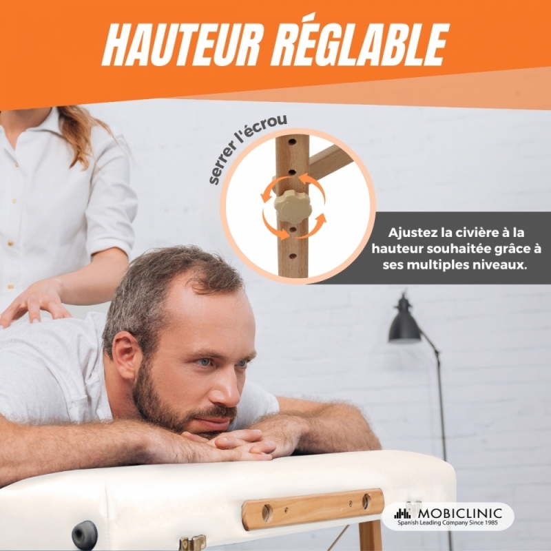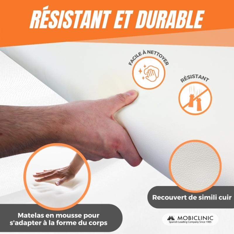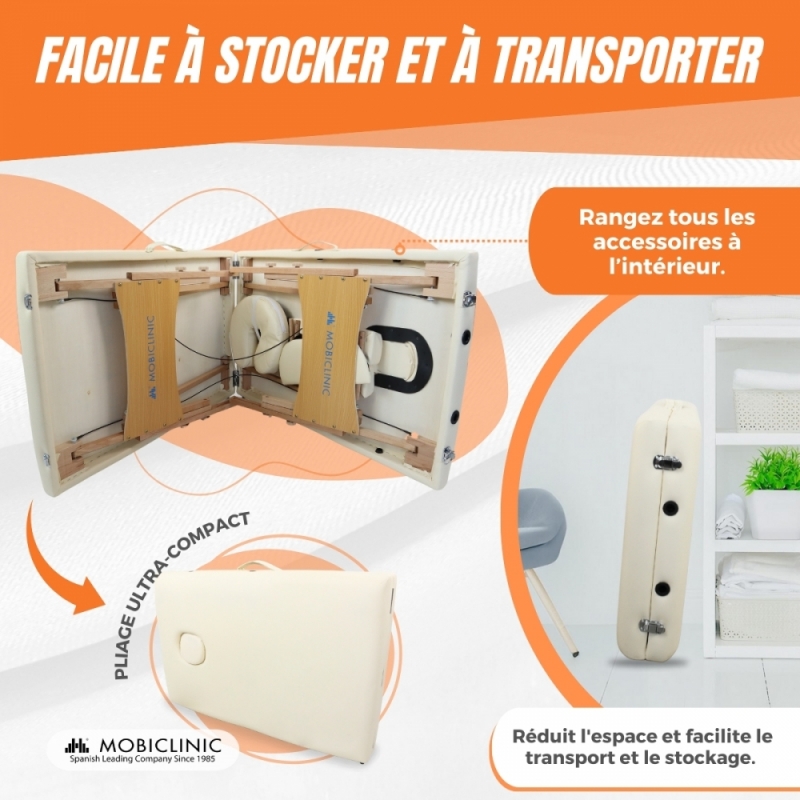 Elle est pliable, donc idéale pour des visites à domicile. Pour plus de confort lors du transport, la table dispose de poignées.