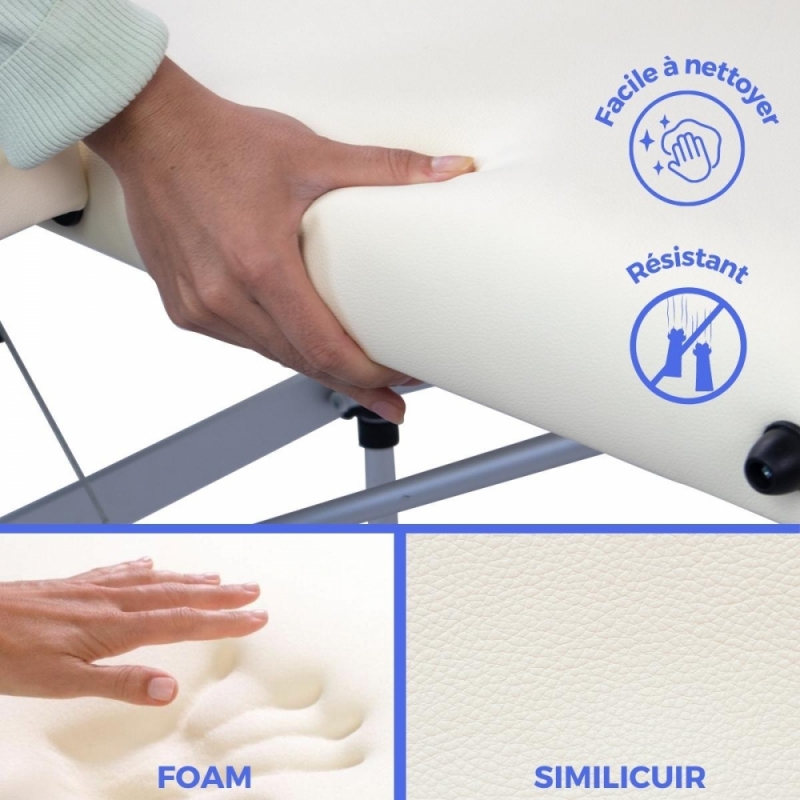 Elle est pliable, donc idéale pour des visites à domicile. Pour plus de confort lors du transport, la table dispose de poignées.