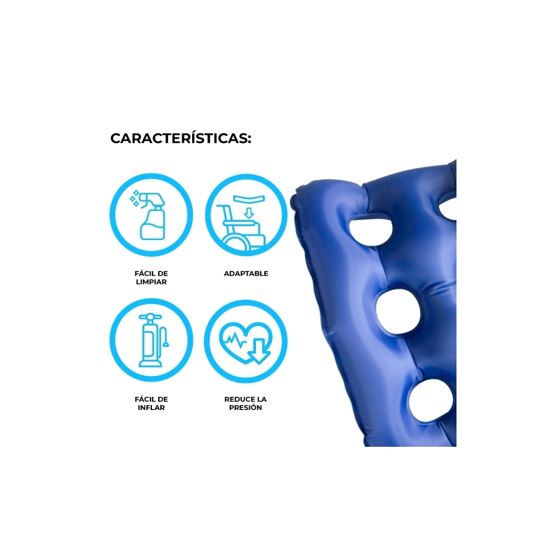 Si votre famille ou votre cabinet médical compte un patient immobile, une personne âgée à mobilité réduite ou une personne âgée qui passe de longues périodes en position assise ou dans une seule position, ce siège gonflable peut être l'article orthopédique qui les aidera à éviter et à diminuer l'inconfort en apportant un soulagement, un soutien et un bien-être aux personnes qui ont subi une chirurgie des hémorroïdes, qui sont alitées pendant de longues périodes ou qui sont en post-partum.