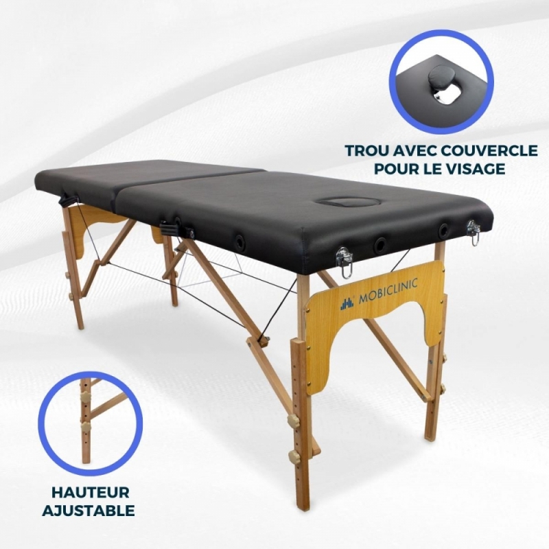 Table de massage pliante | Bois | Portable | 180x60 cm | Massage | Noir | CM-01 BASIC | Mobiclinic