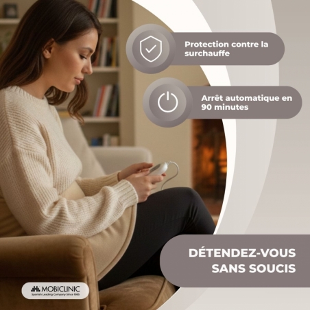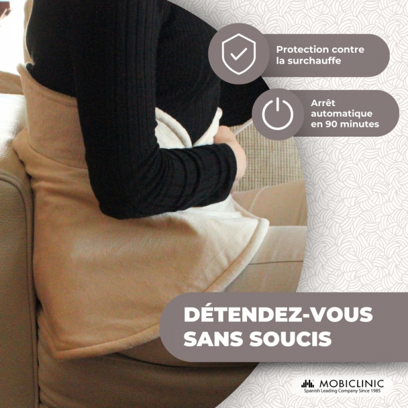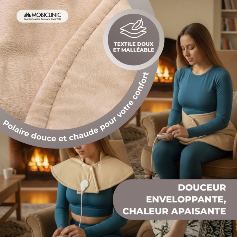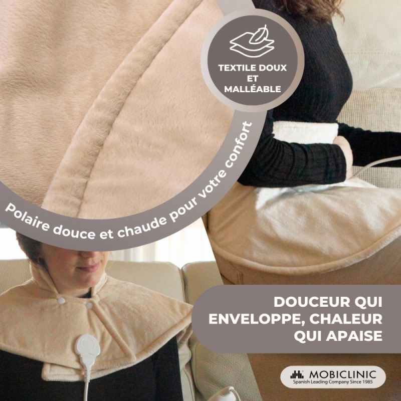 Cette chaleur douce dilate les vaisseaux sanguins et facilite la circulation, soulageant ainsi la douleur. Il contribue également à la récupération de la mobilité musculaire et articulaire, car il détend les muscles et réduit l'inconfort.