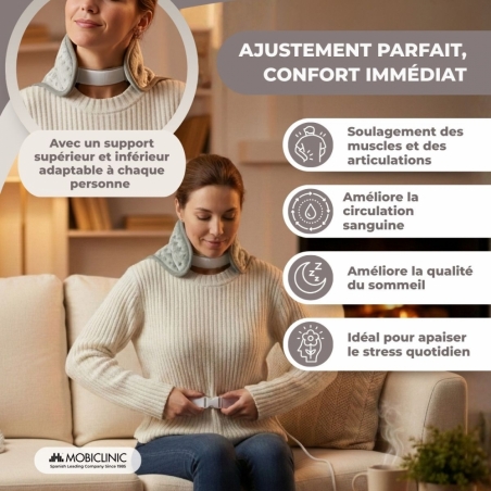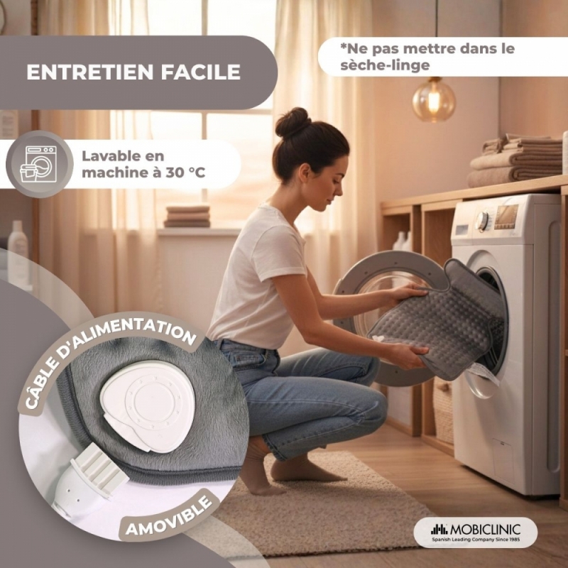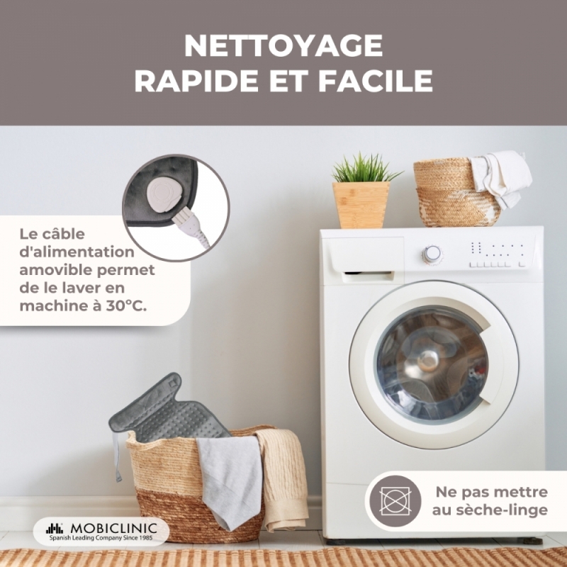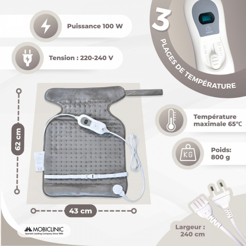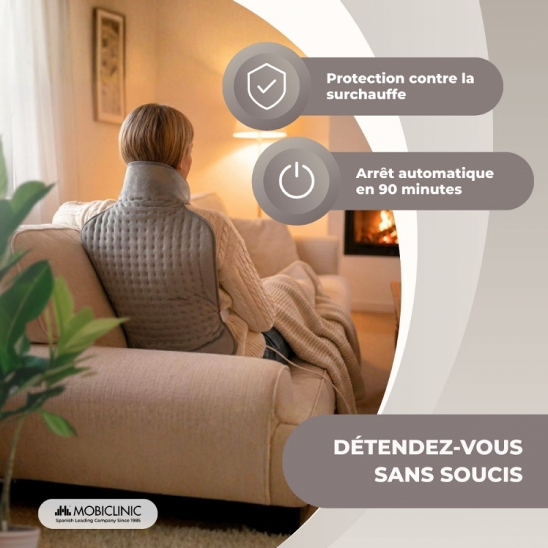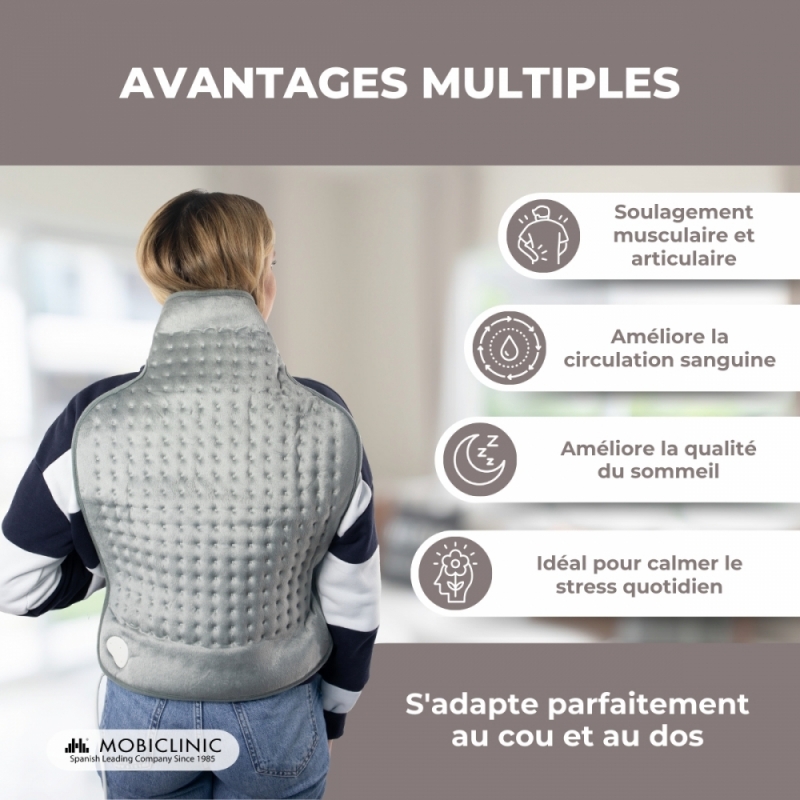 Cette chaleur douce dilate les vaisseaux sanguins et facilite la circulation, soulageant ainsi la douleur. Il contribue également à la récupération de la mobilité musculaire et articulaire, car il détend les muscles et réduit l'inconfort.