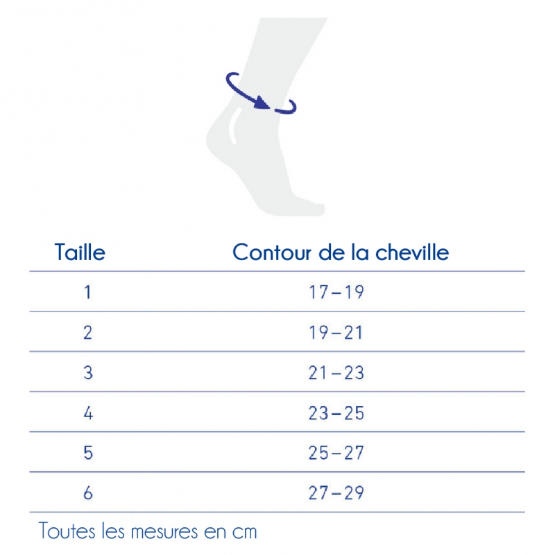 La taille dépend du contour de la cheville en centimètres.