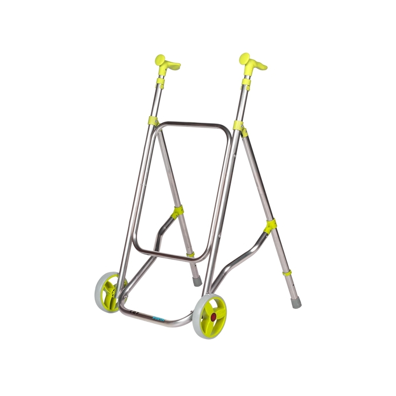 Ce déambulateur se plie facilement en soulevant les tubes qui vont de l'avant aux jambes. En outre, il est doté de poignées ergonomiques réglables en hauteur sur 5 positions.