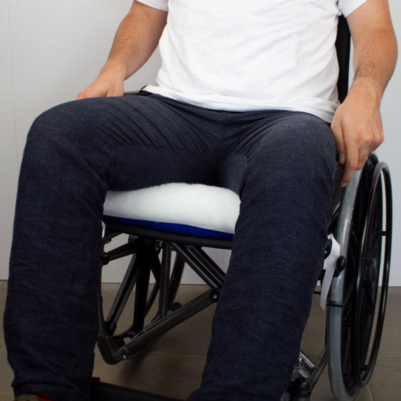 Ce coussin anti-escarre pour fauteuil roulant rempli de fibres creuses de silicone possède une housse inamovible en tricot de polyester avec film PU et une zone de tissu souple qui reste en contact avec la peau. Le tissu est hypoallergénique et doux, très résistant et, comme il bloque l'humidité, les taches peuvent être parfaitement nettoyées avec une éponge douce, du savon et de l'eau.
