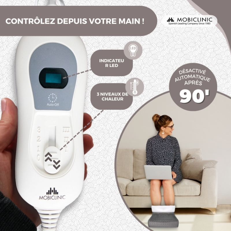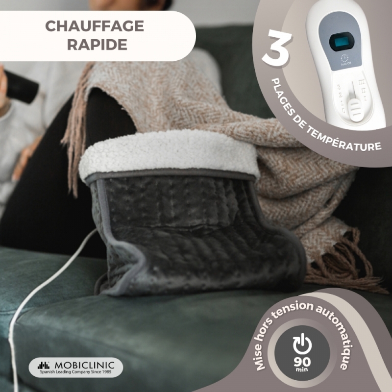 SÛR ET FIABLE : Pour votre sécurité, le chauffe-pieds s'éteint automatiquement après 90 minutes. De plus, la protection intégrée contre la surchauffe vous protège contre les risques d'incendie.