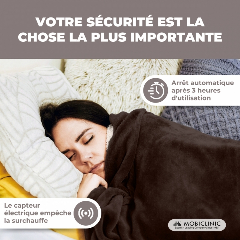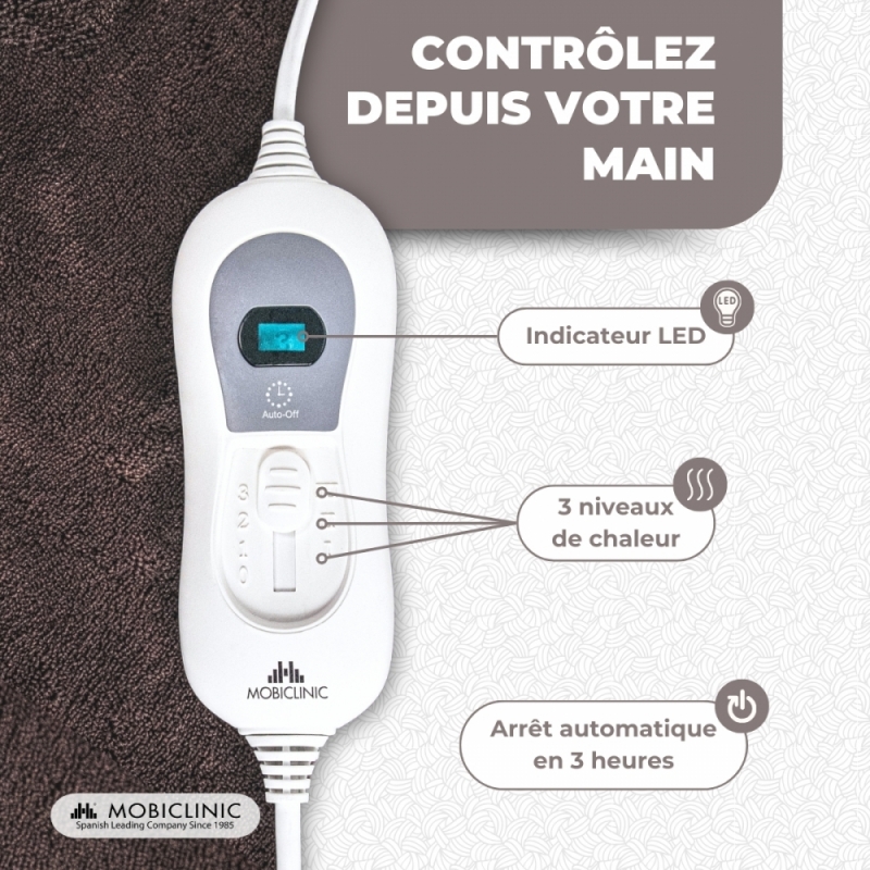 ARRÊT AUTOMATIQUE : Pensant à votre sécurité pendant que vous vous reposez, cette couverture chauffante s'éteint automatiquement après 3 heures d'utilisation.