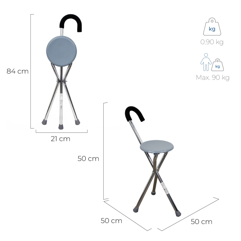 Canne avec siège pliant | Béquille tripode | Aluminium | Jusqu'à 90 kg | Gloria | Mobiclinic