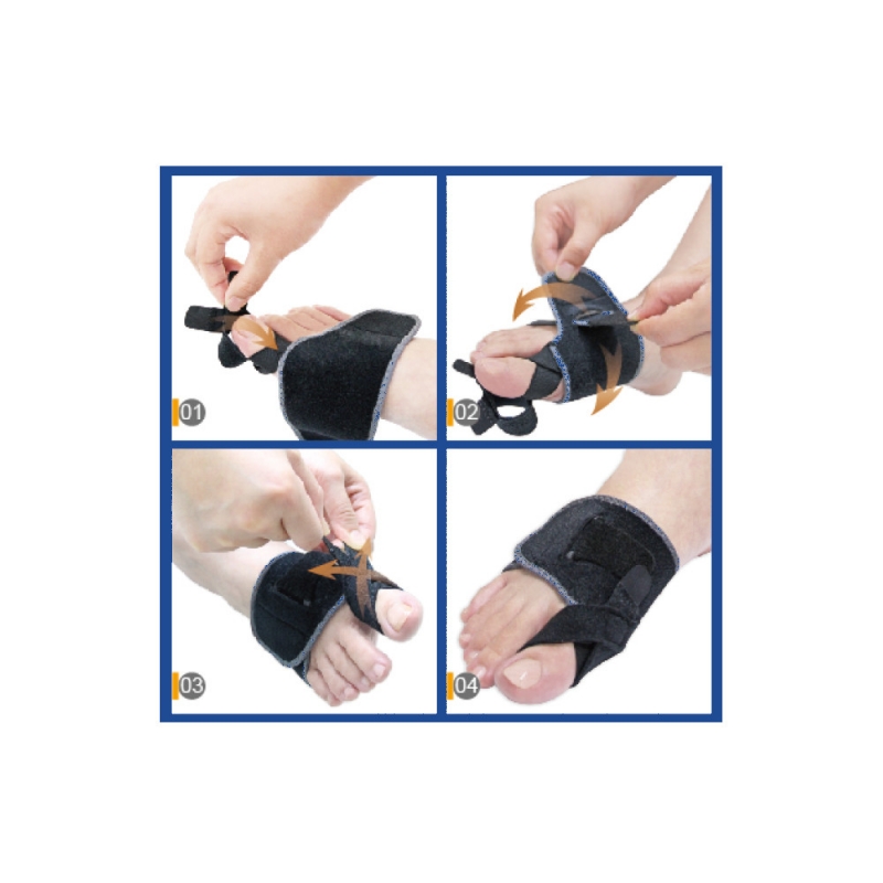 Notre correcteur d'Hallux Valgus (oignon) s'enroule autour de la partie médiane du pied et possède une bande élastique qui agit sur le premier orteil, par une pression contrôlée qui favorise l'alignement progressif de la déviation valgus.