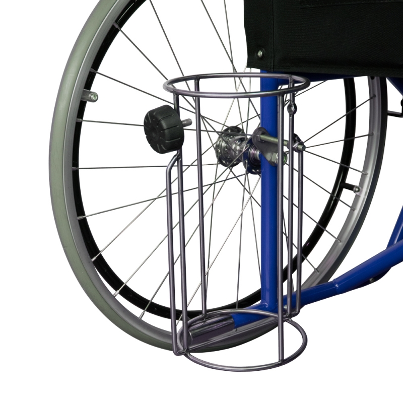 Le porte-oxygène est un accessoire qui permet à l'utilisateur de placer l'oxygène à l'arrière du fauteuil roulant. Il est fabriqué en acier chromé et a un diamètre intérieur de 15 cm.