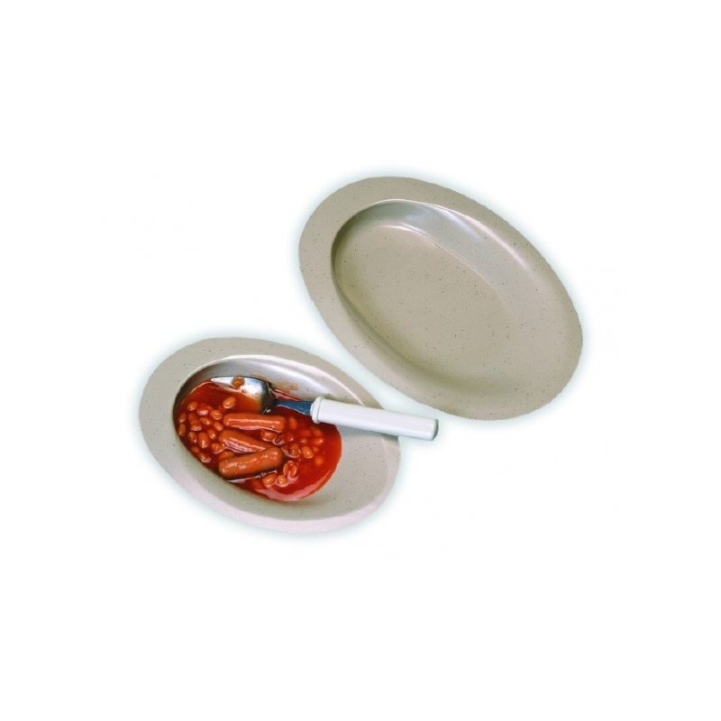 Assiette avec fond incliné idéale pour les personnes ne pouvant utiliser qu’une seule main. Sa base découpée permet une prise ferme et équilibrée d'une seule main, tandis que ses bords verticaux facilitent la capture des aliments car ils ne basculent pas.