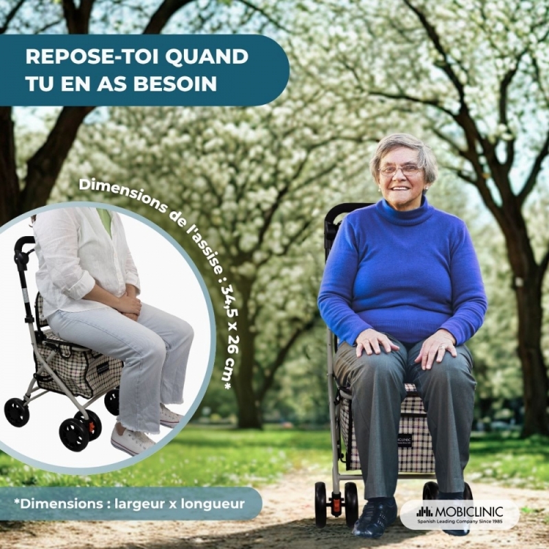 Déambulateur chariot de course | 4 roues | Pliable | Avec sac | Avec système de freinage | A carreaux | Coliseo | Mobiclinic