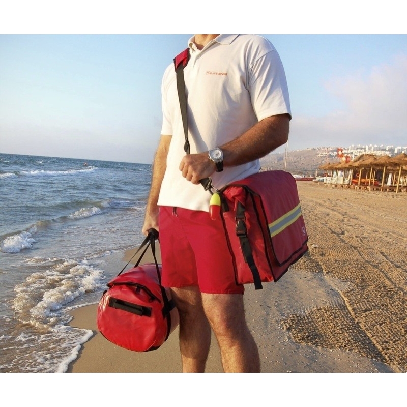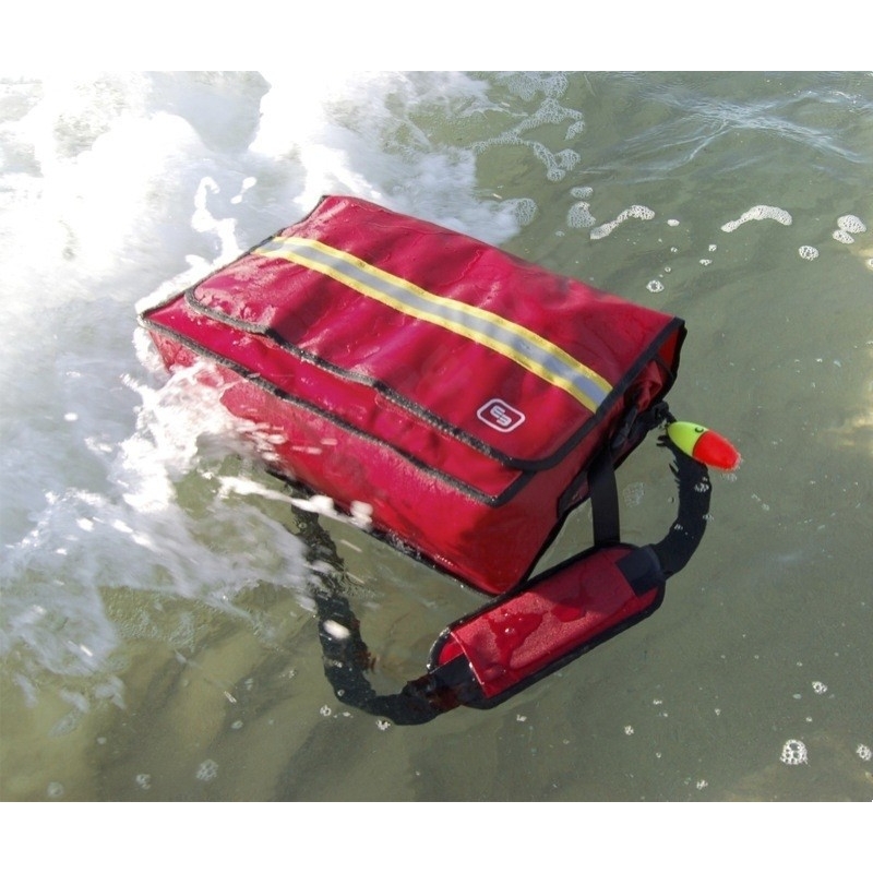 Sac de premier secours SAIL'S 100% étanche avec système de fermeture imperméable enroulable et avec boucle rapide, système de fermeture Velcro, bandoulière rembourrée amovible, bandes réfléchissantes et coutures thermo scellées.
