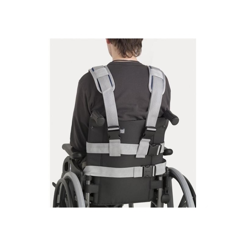L'ensemble se compose d'une ceinture abdominale et bretelles avec une partie du périnée pour stabiliser le tronc. Son design ergonomique permet une adaptation à tous les utilisateurs.