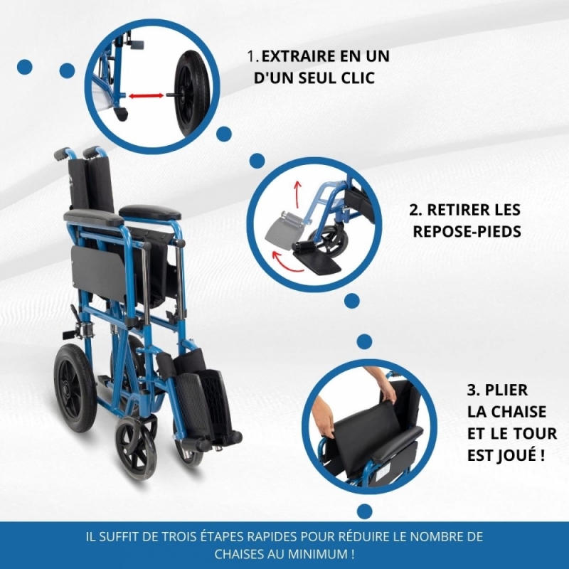 PLIABLE : Fauteuil roulant pliant facile à ranger . Se replie pour un transport facile
