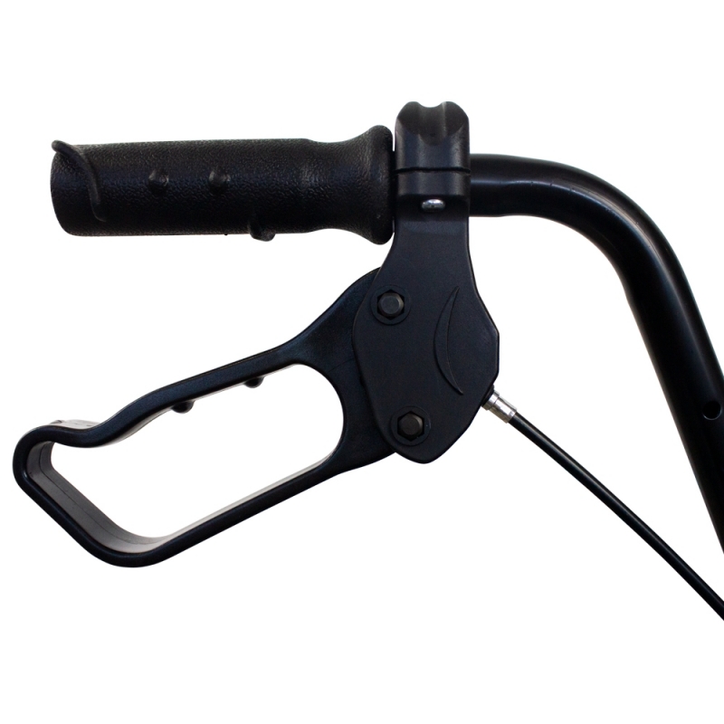 Les poignées du déambulateur avec siège sont ergonomiques, ce qui permet de répartir et d'amortir le poids et de réduire la fatigue pendant l'utilisation. De plus, ils comprennent des freins à activation progressive pour arrêter le déambulateur au moment voulu et sans effort, et offrent également la possibilité de les laisser verrouillés pour garantir l'immobilisation du déambulateur, par exemple lorsqu'il est assis sur le siège.