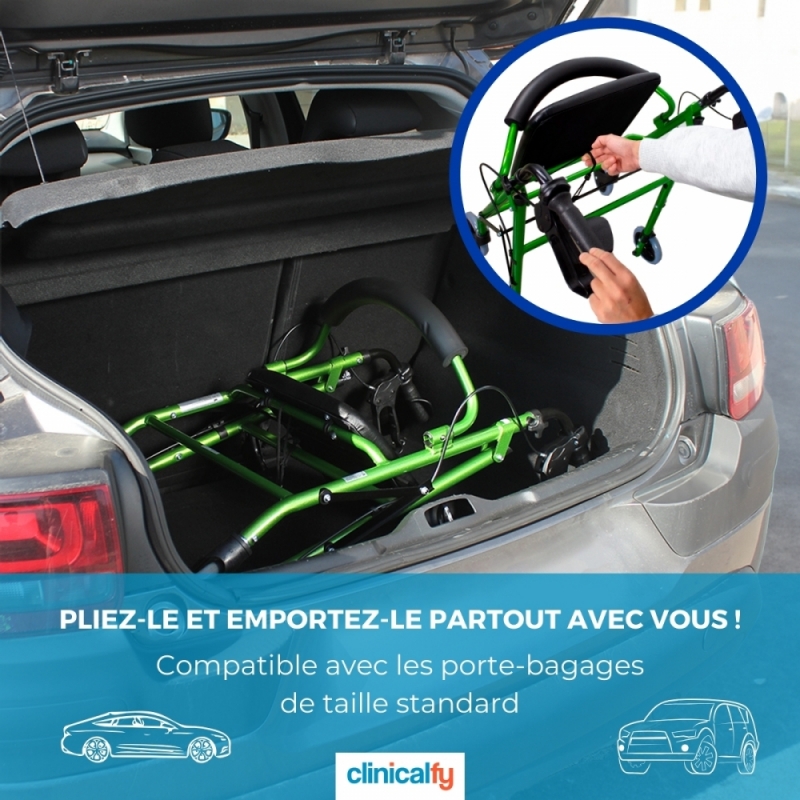 PORTES ET COFFRE : Ce déambulateur a une largeur totale de 60 cm, il peut donc passer à travers des portes de largeur standard de 62,5 cm. De plus, comme ce déambulateur ne mesure que 24,5 cm une fois plié, il est assez facile à transporter. Veuillez vérifier les mesures de vos portes et de votre véhicule pour vous assurer qu'elles conviennent.