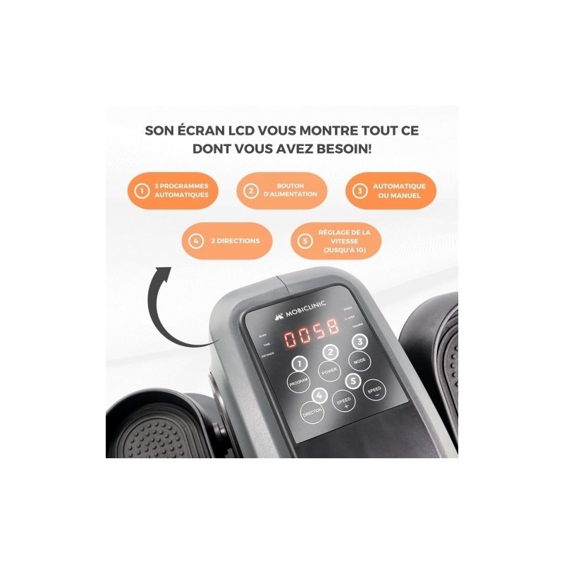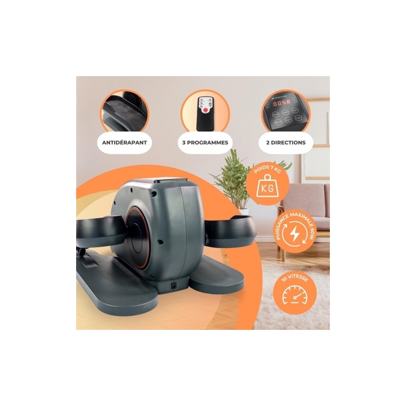 - Le mini vélo elliptique Vane ou pédalier : il est équipé d'un écran LCD qui affiche votre vitesse, votre temps, la distance parcourue, les calories perdues et votre pouls. Il dispose également de pédales antidérapantes pour rendre votre entraînement plus efficace.