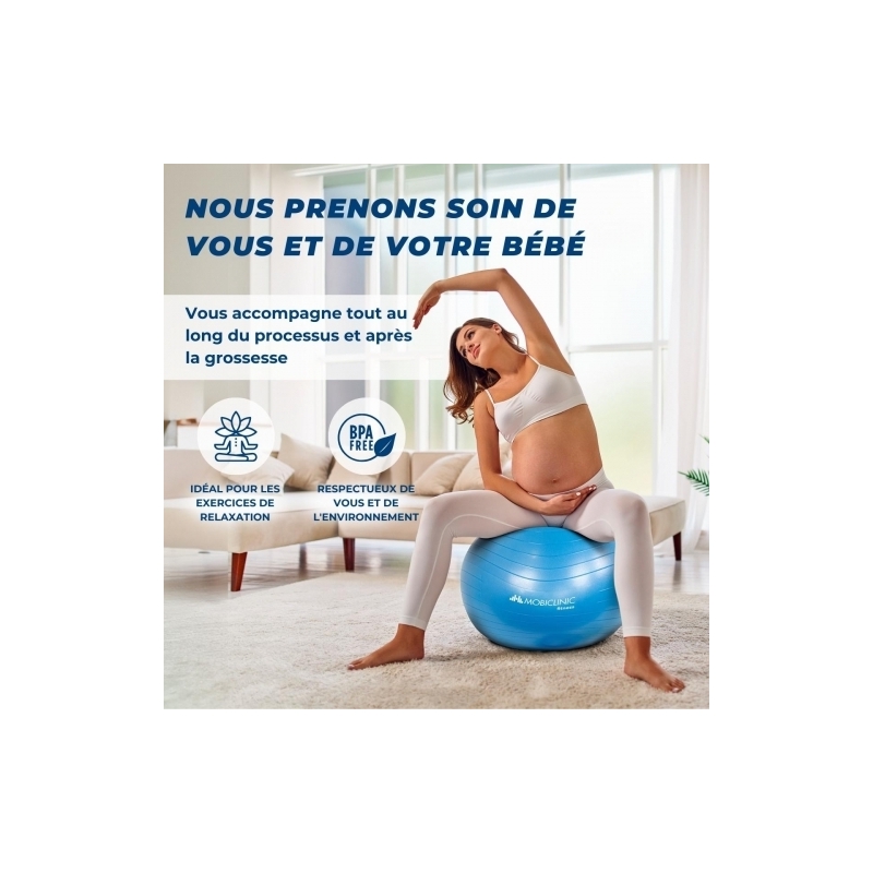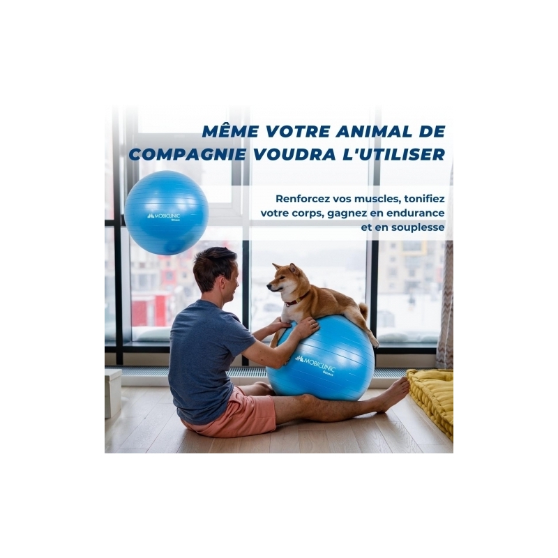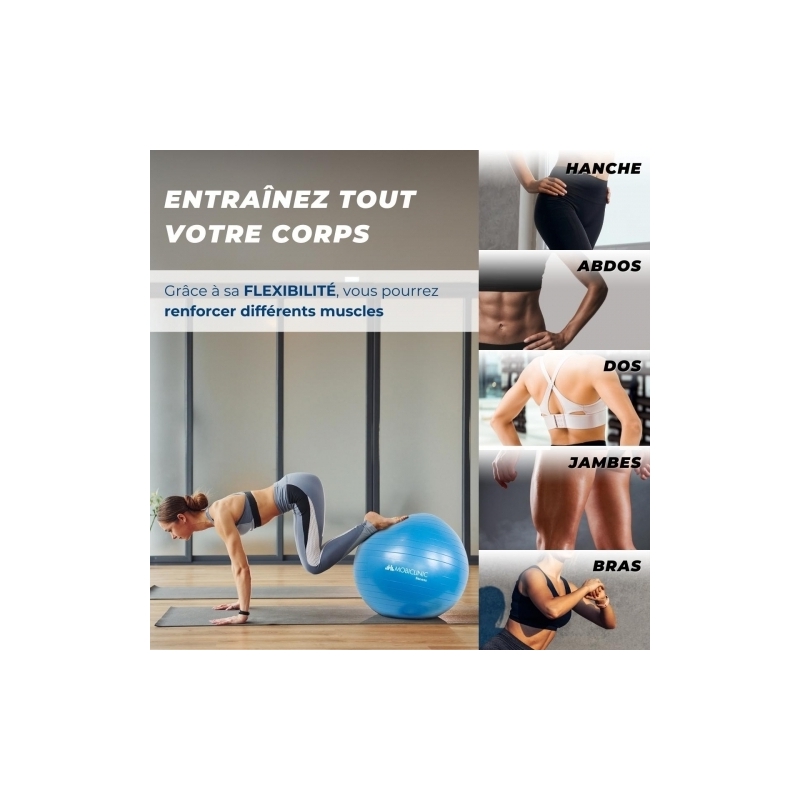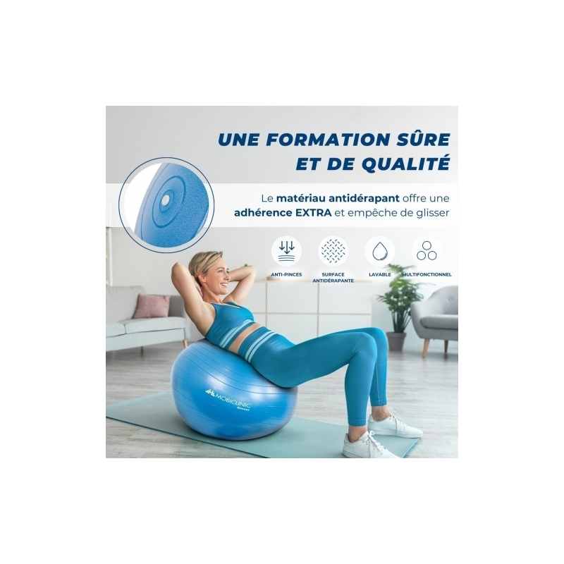 - Ballon de Pilates : ballon antidérapant en PVC, gonfleur inclus.