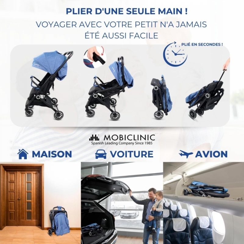Poussette bébé |Compacte |Pliable |Levier unique |Pour voyager |Repose-pieds réglable |Max. 15kg |Bleu |Trip | Mobiclinic