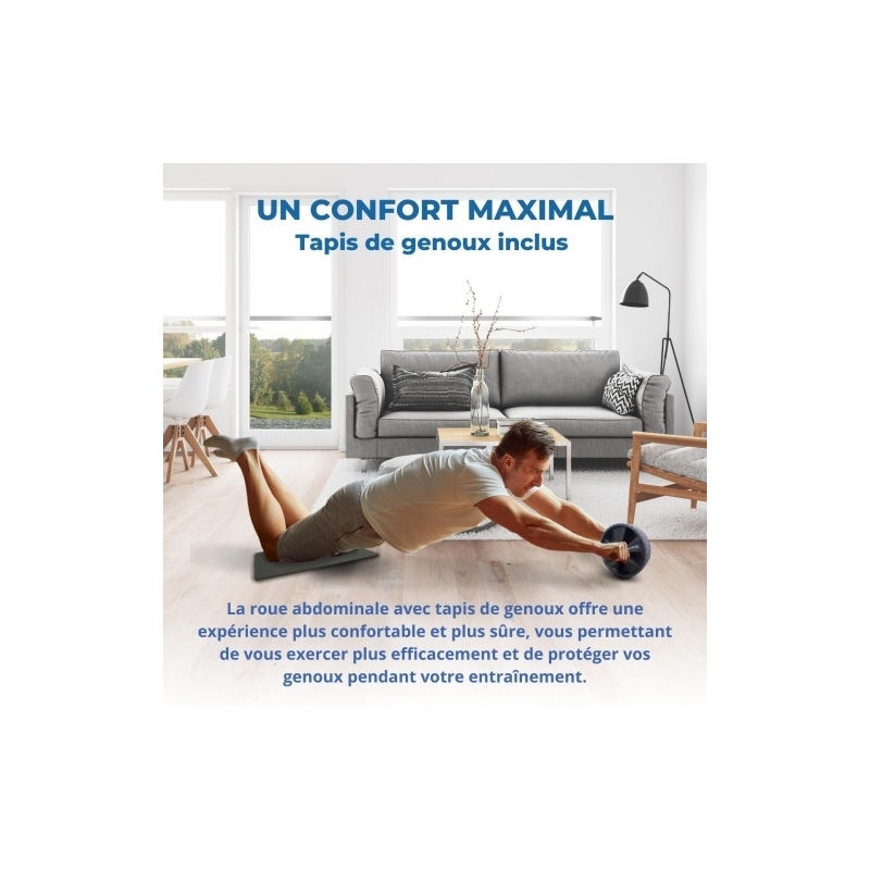 Ce rouleau abdominal comprend un tapis pour soutenir vos genoux et rendre votre exercice plus confortable et plus facile à réaliser en évitant de glisser.