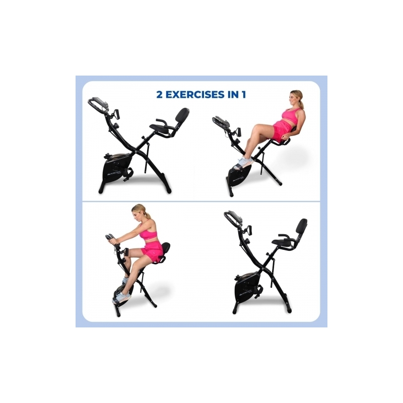 Le vélo Everest dispose de 3 modes d'expansion grâce à son ouverture de base réglable en forme de ciseaux : en tant que vélo d'exercice vertical , qui aide efficacement à brûler des calories et à effectuer des exercices plus intenses ; comme vélo d'appartement allongé , pour un entraînement plus doux en regardant la télévision ou en lisant un livre ; et la position pliée pour le ranger sans avoir besoin de le démonter. En effet, sa conception et son dossier rabattable permettent de réaliser facilement l' entraînement à l'endroit que vous souhaitez .