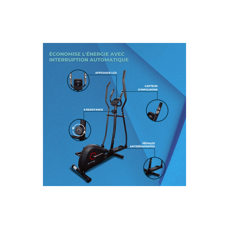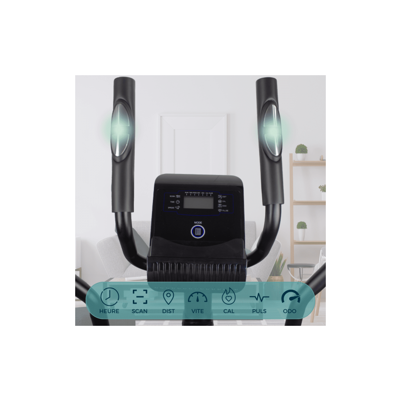 Le vélo elliptique ATLAS a été conçu pour les utilisateurs ayant un niveau d'initiation, car il aide à faire un exercice progressif en ayant 8 résistances , ce qui permet à la machine de s'adapter à vos objectifs et à votre condition physique. De plus, vous pourrez voir l'évolution de votre entraînement grâce à l'écran LCD qui est incorporé : vous pourrez mesurer la vitesse, le temps, la distance parcourue, les calories perdues et le pouls.