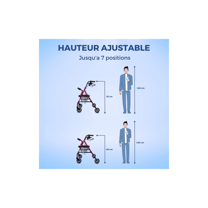 RÉGLABLE : pour garantir un maximum d'adaptation et de confort d'utilisation, ce déambulateur est réglable en fonction de la taille de l'utilisateur.