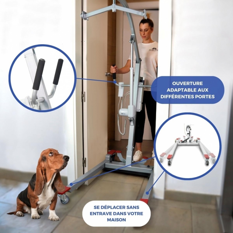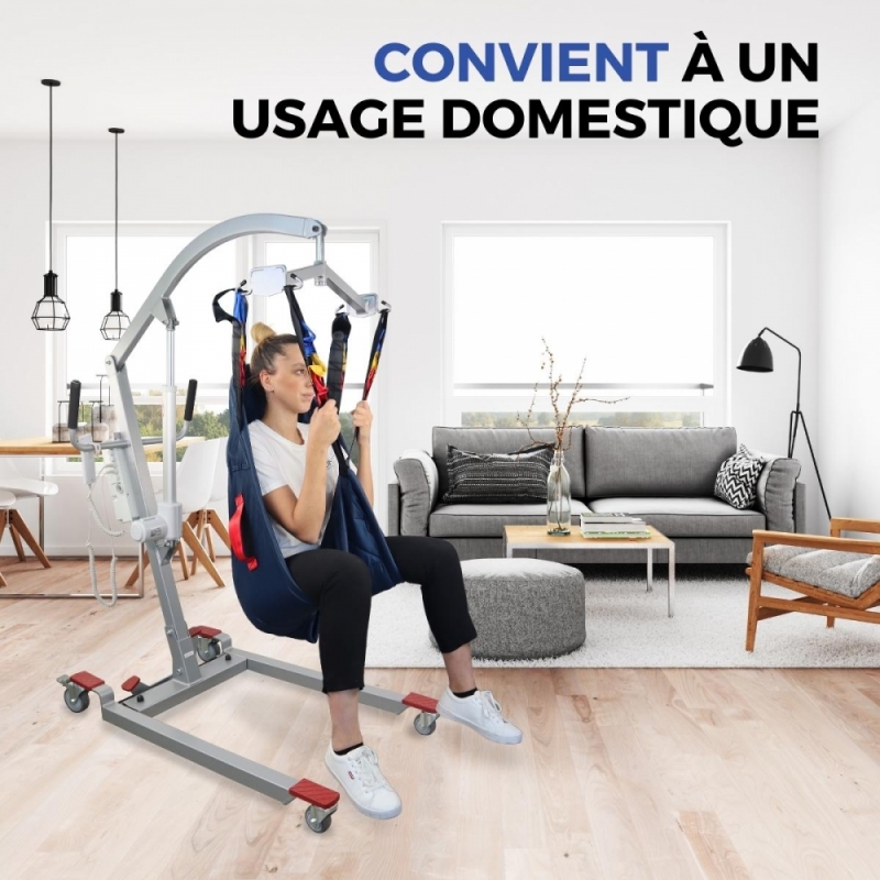 ROBUSTE ET STABLE : Fabriqué en acier et autres matériaux durables , il est équipé d'un harnais haute résistance et de roues à blocage de sécurité, pour une meilleure stabilité du patient. Sa structure robuste et son harnais à quatre crochets assurent des transferts fluides et rapides, offrant une plus grande sensation d'espace à l'utilisateur.