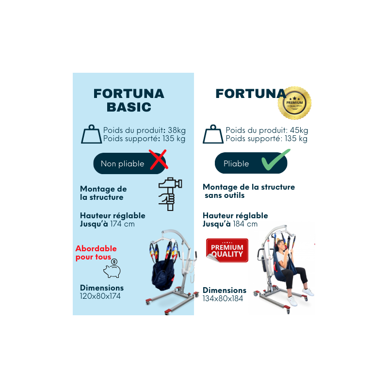 Le lève-personne électrique Fortuna Basic Mobiclinic permet de transférer en toute sécurité un patient d'un fauteuil roulant à un canapé, un lit, ou inversement. Il réduit l' effort physique nécessaire au déplacement du patient, en accordant une attention particulière à la santé physique du soignant. Ce modèle prévient principalement :
