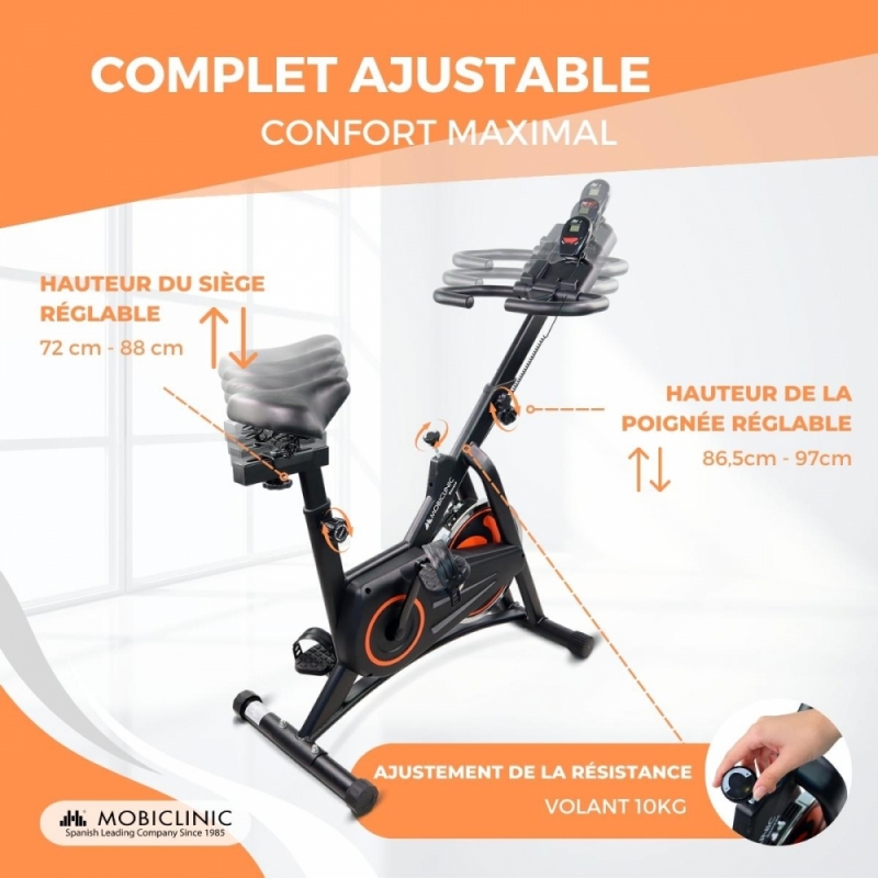 Vélo d'appartement | Volant d'inertie 10 kg | Réglable | Avec roues | Écran LCD | Charge max. 120kg | Makalu | Mobiclinic