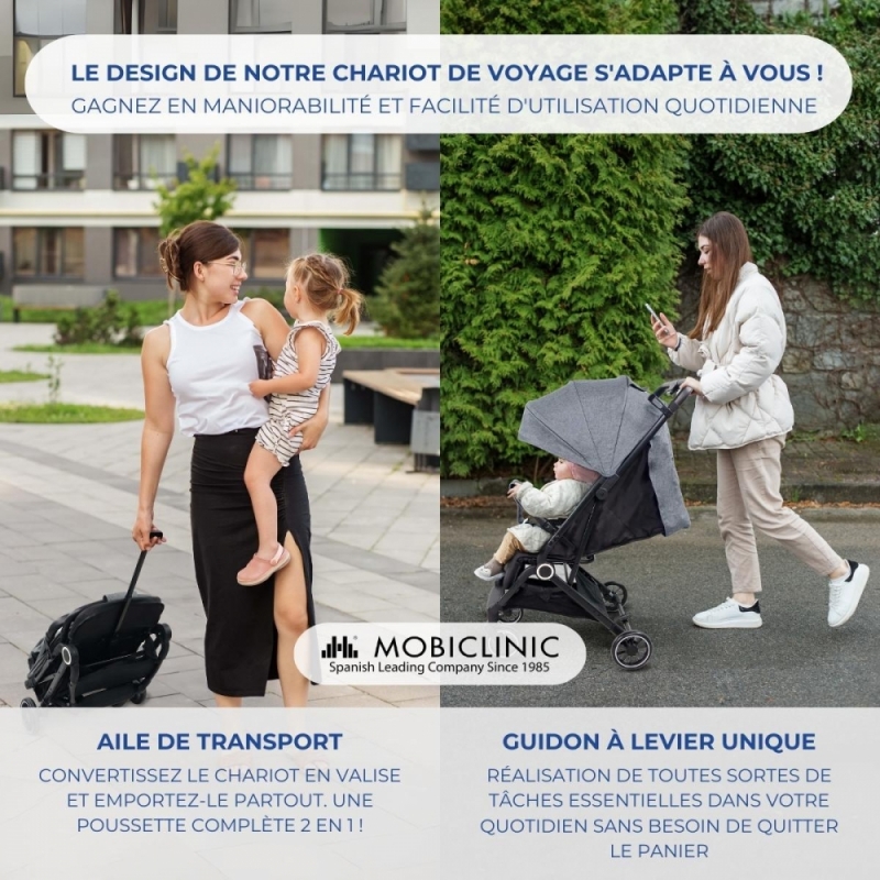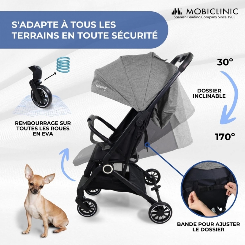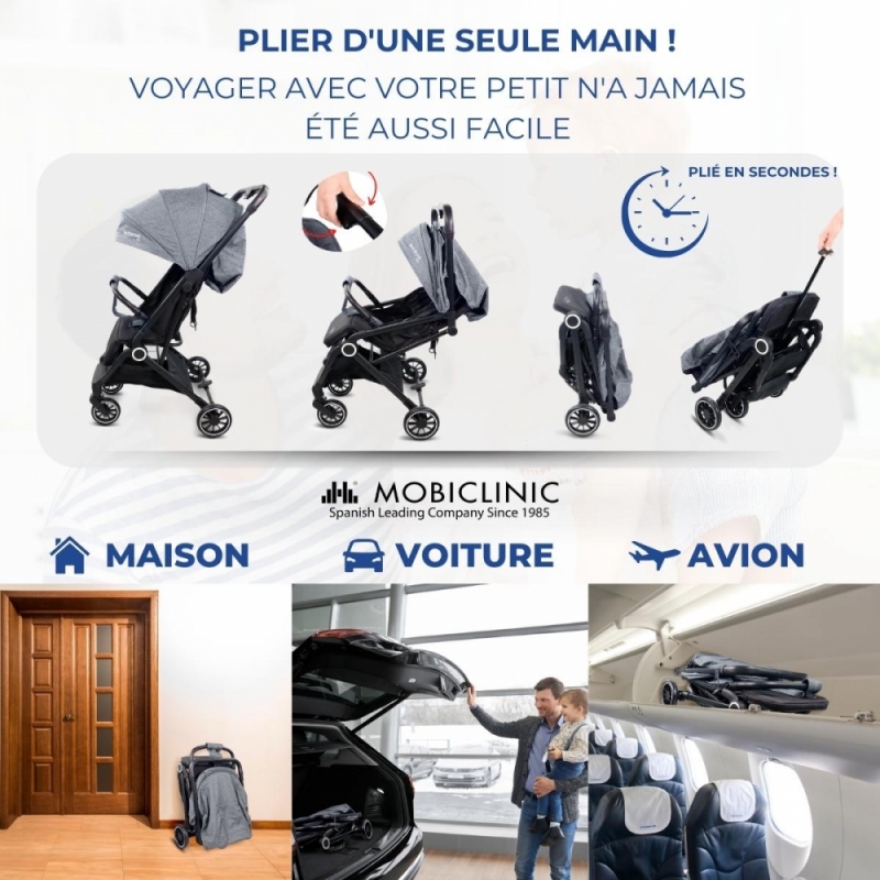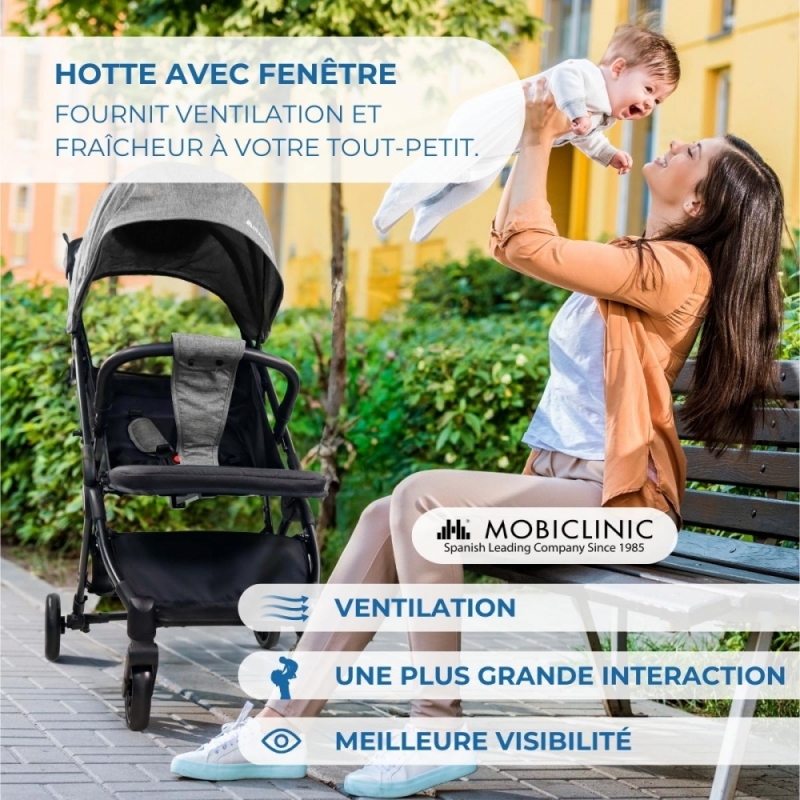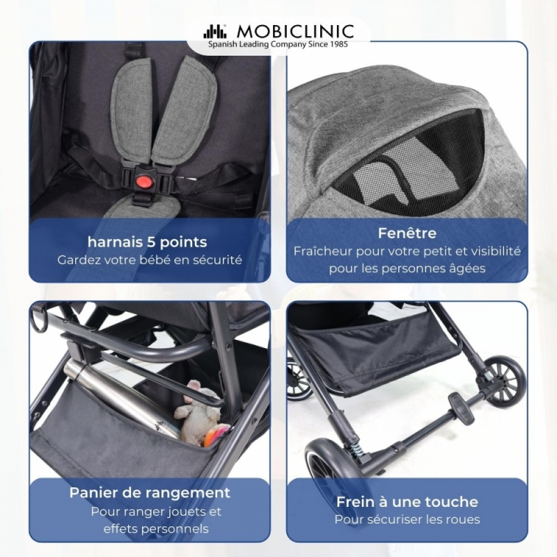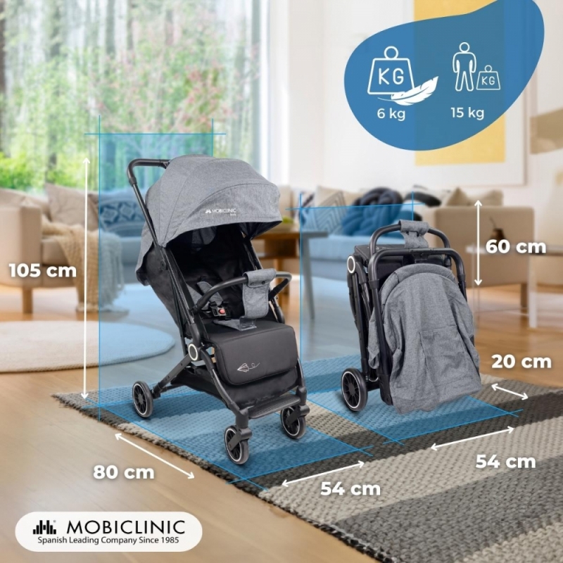 Poussette bébé |Compacte |Pliable |Levier unique |Pour voyager |Repose-pieds réglable |Max. 15kg |Gris |Trip | Mobiclinic