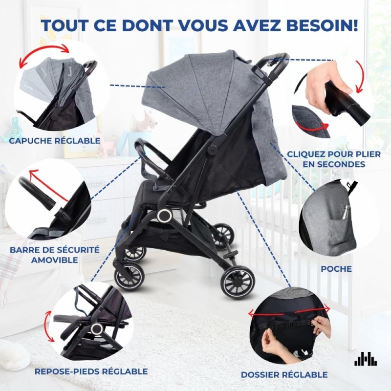 CONFORTABLE ET FONCTIONNEL : Son fonctionnement simple à levier unique et ses matériaux légers en font une option vraiment confortable pour les parents et les tout-petits, car ses quatre roues rembourrées offrent un mouvement fluide.