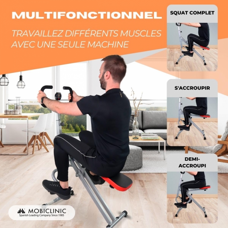 Équipement de musculation | Squats | Fessiers | Pliable | Guidon réglable | Acier | Max. 100kg | VitalFit | Mobiclinic