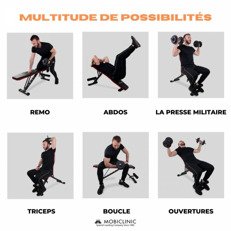 - Ses multiples fonctions pour exercer et tonifier les différents muscles du corps de manière complémentaire.