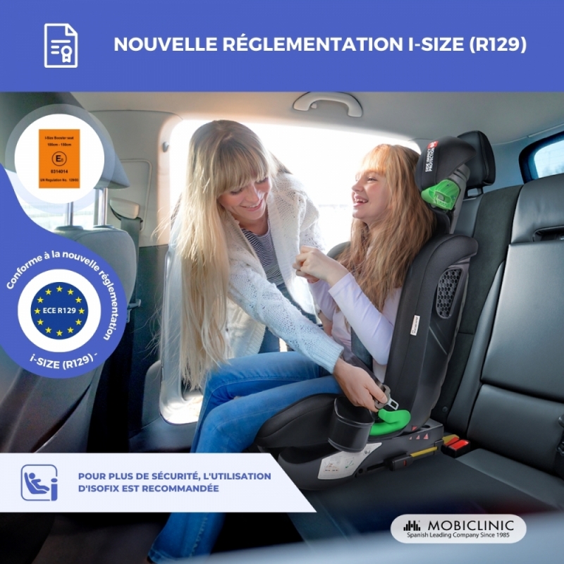 VOYAGER AVEC ISOFIX : Ce siège bébé est conforme à la nouvelle réglementation i-Size ou aussi appelée R129, beaucoup plus sûre. Le système de fixation IsoFix pour l'installation des sièges auto est conçu pour augmenter la protection des enfants voyageant dans les véhicules. Son objectif principal est de réduire les risques de déplacement du siège lors d'un accident de voiture.
