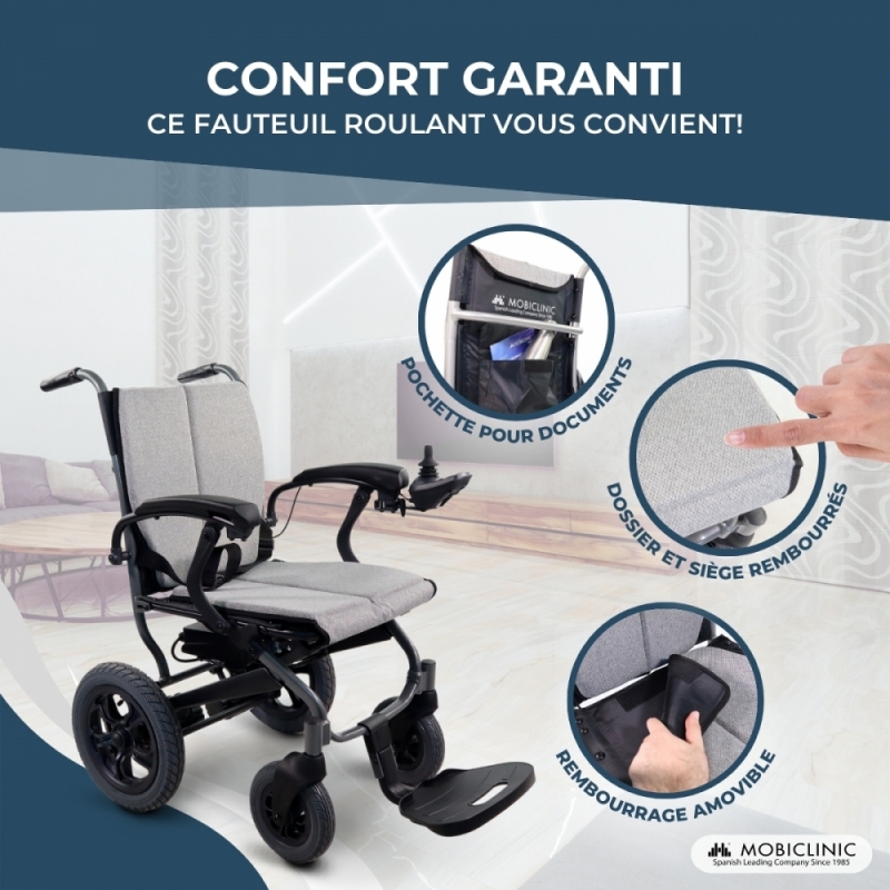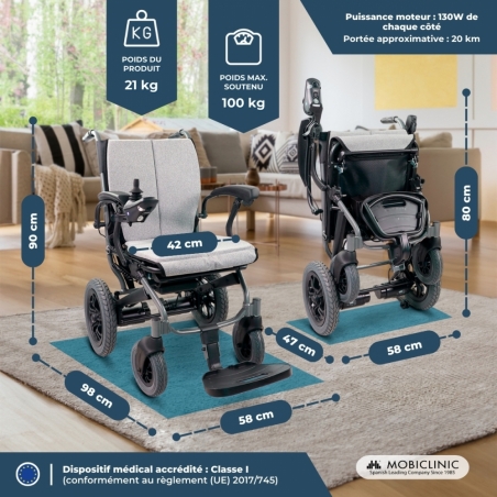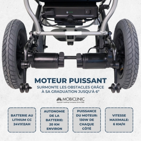 TECHNOLOGIE AVANCÉE : Ce fauteuil roulant électrique pliable est doté d’un compartiment batterie à ouverture rapide, une caractéristique essentielle. Son phare intégré, rechargeable par USB, assure une bonne visibilité. Sa vitesse maximale est de 6 km/h et son autonomie de 20 km.