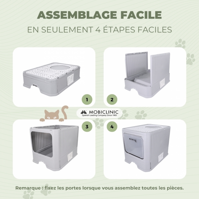 STRUCTURE : Le bac à litière fermé pour chat est doté d'une grille supérieure qui offre une prise sûre lorsque le chat quitte le bac à litière, empêchant ainsi de glisser et gardant la zone propre. Le plateau extensible simplifie le changement de litière, éliminant tout effort inutile et facilitant la tâche. De plus, la porte est dotée de butées inférieures, s'ouvrant uniquement vers l'intérieur. Offre une plus grande stabilité, tandis que la sortie supérieure offre une alternative rapide au levage.