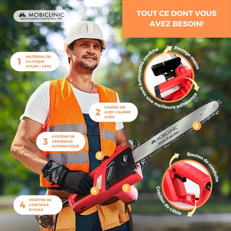 Ces fonctionnalités offrent une couche de protection supplémentaire , garantissant un fonctionnement sûr à tout moment. Ce n'est pas seulement une tronçonneuse, c'est un outil puissant qui allie performance, confort et sécurité dans un ensemble exceptionnel.