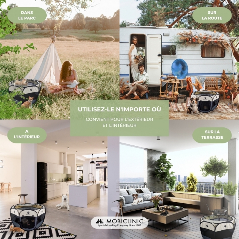 La polyvalence de ce parc ne connaît pas de limites conventionnelles, s'adaptant facilement à n'importe quel environnement, que ce soit à l'intérieur ou à l'extérieur . De plus, sa conception astucieuse en fait un refuge sûr pour les chats, lapins, hamsters et autres petits rongeurs.