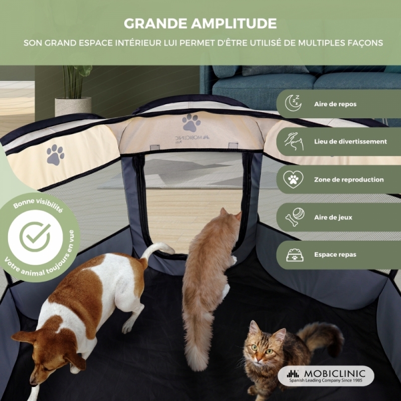 Ce parc portable offre à votre chien un espace pour jouer , se reposer et s'entraîner , où que vous soyez. C'est très utile lorsque l'animal doit se reposer, afin que les autres animaux de l'environnement ne le dérangent pas.