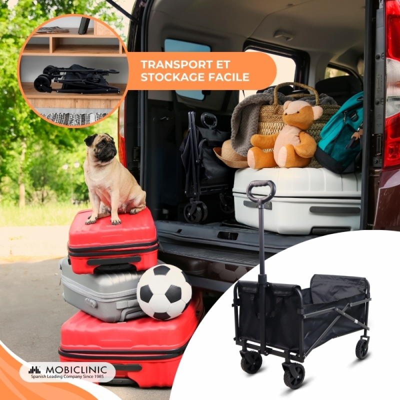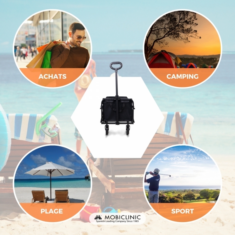Chariot de transport plage et jardin | Poignée réglable | 71x47x67cm | Pliable | Roues 360º | Duna Basic | Mobiclinic