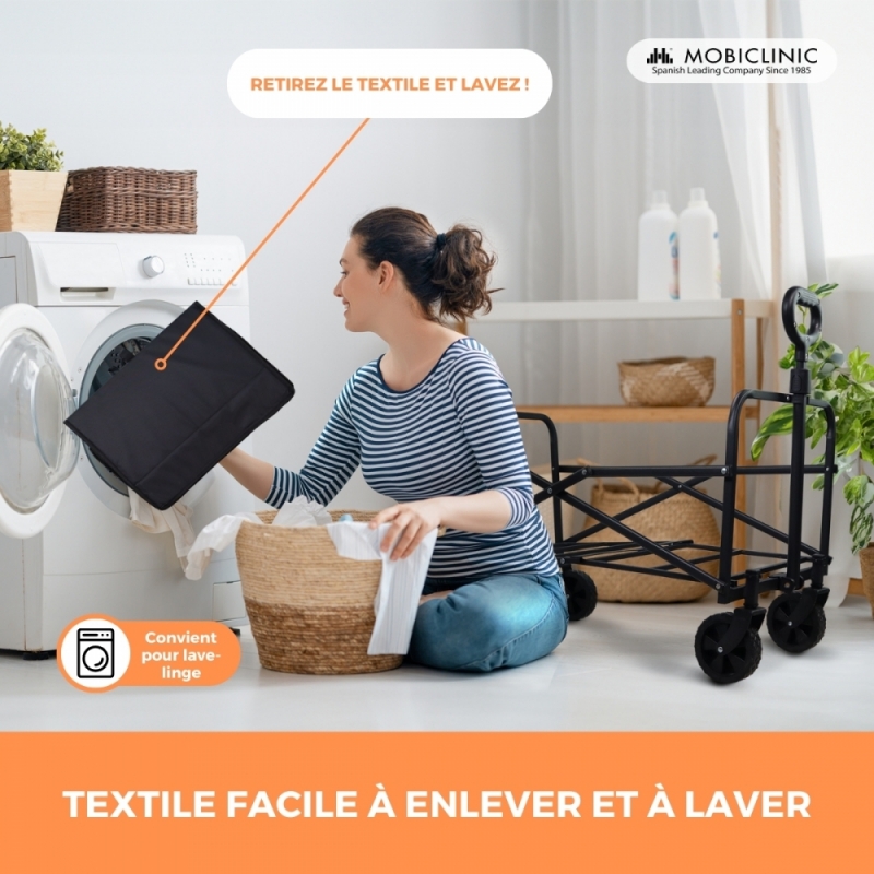 PLIABLE ET PORTABLE : Sa conception pliable le rend facile à ranger et à transporter, ce qui en fait une option parfaite pour un usage quotidien et n'importe où. Lorsqu'il n'est pas utilisé, le chariot de transport se plie de manière compacte, occupant un minimum de place et étant facile à transporter n'importe où. De plus, si vous le souhaitez, vous pouvez retirer la partie textile.