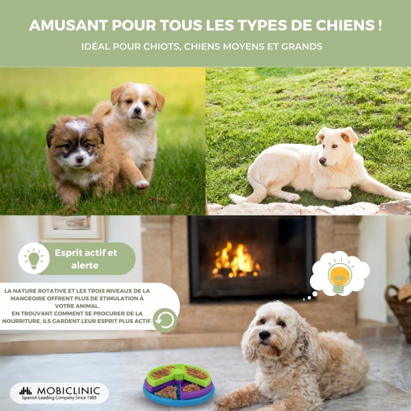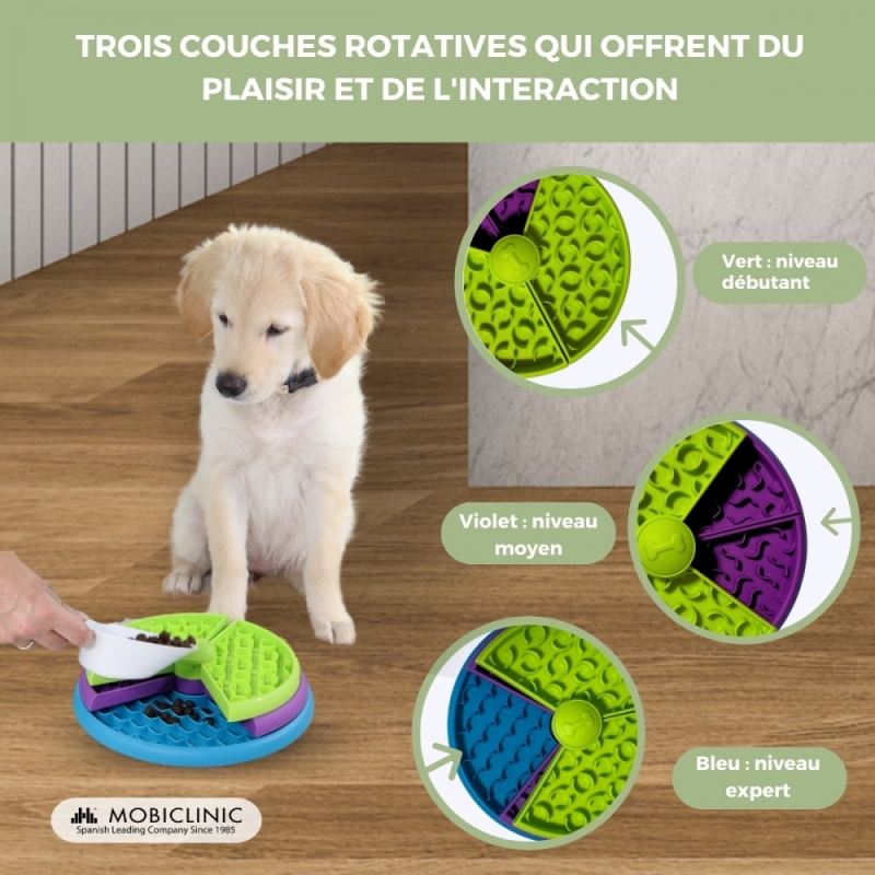 Mangeoire interactive pour chiens | Trois couches | 26x26x7,5 cm | Combattre l'ennui | Antidérapant | Jeu| Doggy| Mobiclinic