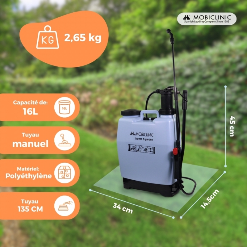 Ce pulvérisateur permet un contrôle précis de la quantité de liquide appliqué, indispensable pour ajuster les doses en fonction des besoins spécifiques de chaque tâche. Son adaptabilité est mise en valeur par 4 buses interchangeables , permettant son utilisation dans diverses applications, des traitements localisés à la couverture étendue. Sa capacité est de 16L.