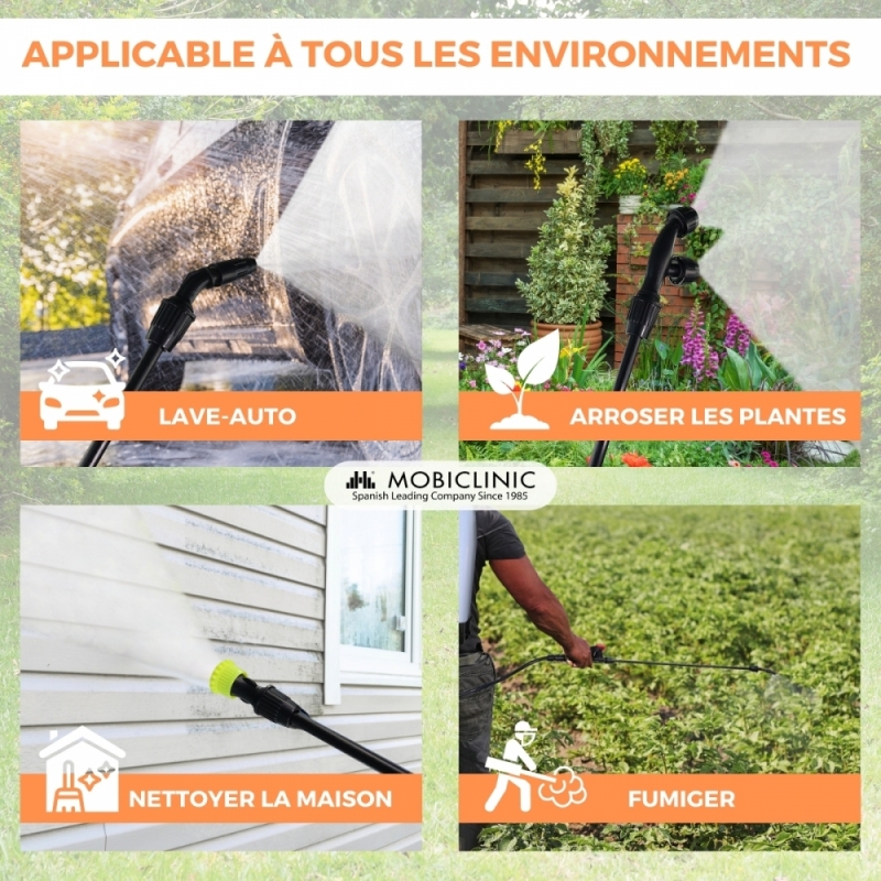 EFFICACE ET ADAPTABLE : Le pulvérisateur Fumibug facilite l'application efficace des produits chimiques , car ils permettent de couvrir de grandes surfaces en moins de temps. Cela permet d'économiser du temps et des efforts par rapport aux méthodes manuelles. Il est également idéal pour l'irrigation. Sa conception adaptable facilite une distribution uniforme de l'eau , ce qui en fait l'outil parfait pour garder vos plantes et jardins toujours sains .